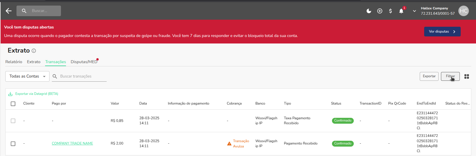 Os mesmos passos podem ser utilizados para obter endToEndId de outros tipos, como pix-out e pix-refund.