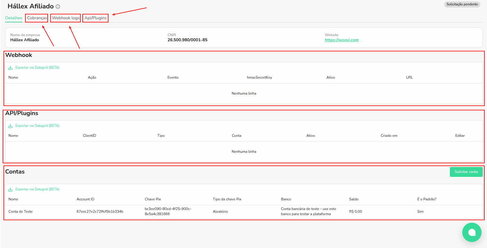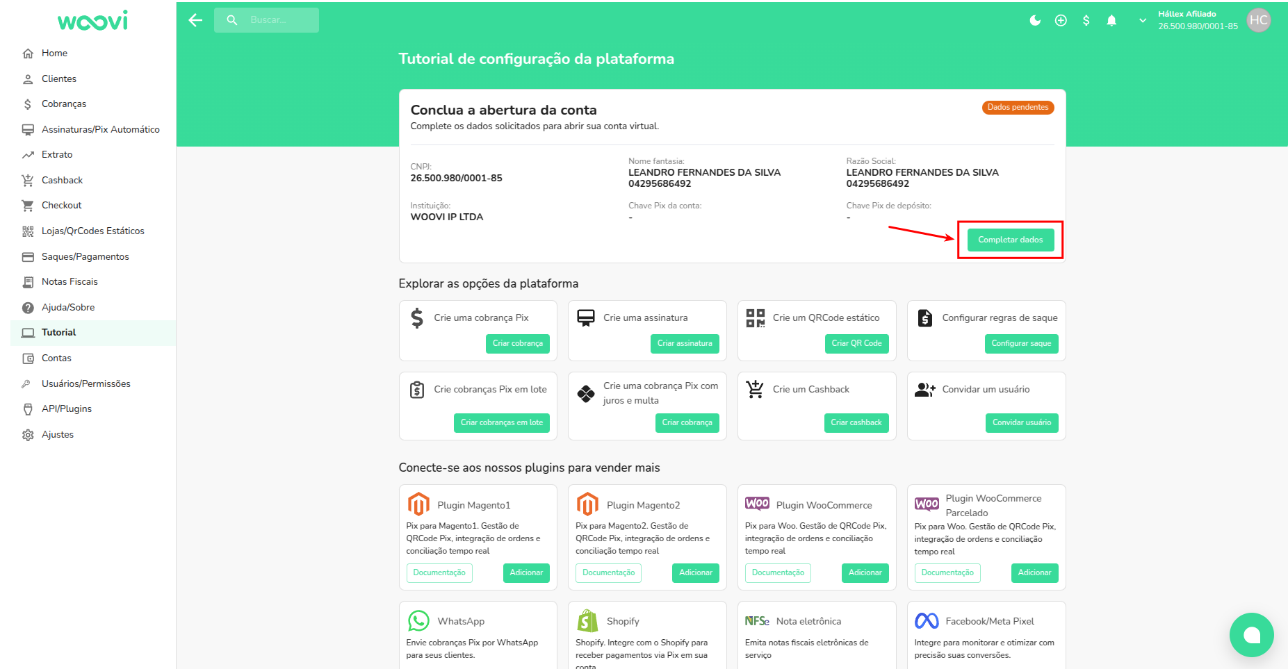 1. Após o afiliado se cadastrar, ele terá acesso a uma conta na woovi como seu afiliado