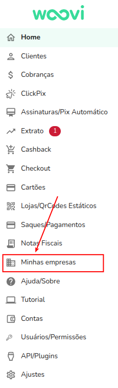 1. Acesse o nosso dashboard, no menu localizado no lado esquerdo clique em "Minhas Empresas" para visualizar todos seus afiliados